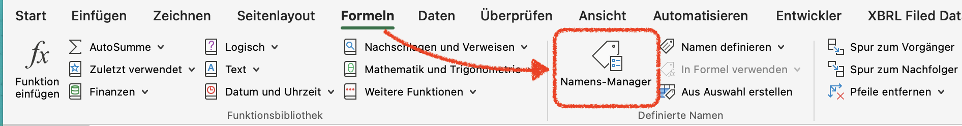 Auf diese Weise lassen sich oft adressierte Zellen oder Bereiche benennen. Dadurch kann die Adresse für Verwendung in Formeln abstrahiert werden.